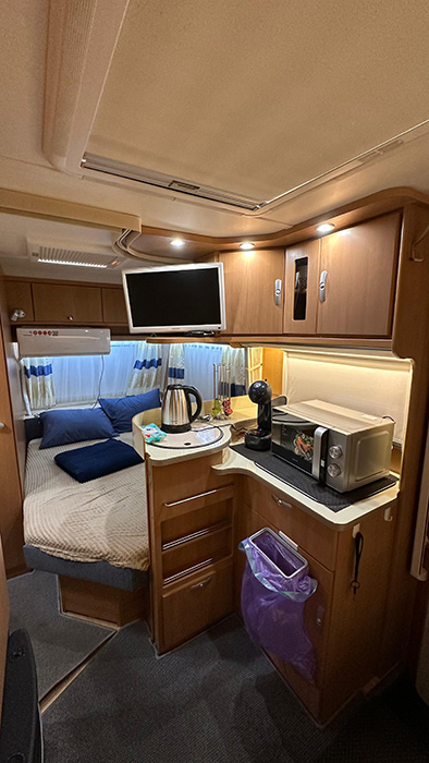Tabbert DaVinchi предлагает не только зоны для отдыха, но и специальные пространства для подготовки к выступлениям. Удобные столы, освещение и возможность подключения к электроэнергии позволяют артистам готовиться к своим выступлениям в спокойной обстановке. Здесь можно провести репетицию, обсудить детали с командой или просто отдохнуть перед выходом на сцену.